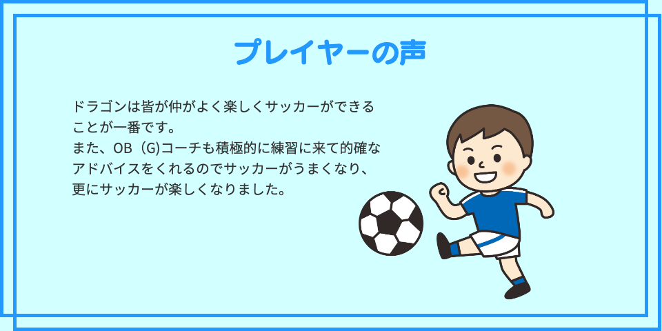 - 友達が多くなります。(ドラゴンは特にに多くの学校からの参加者がいるため他の地域の友達ができるかも)
