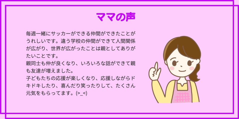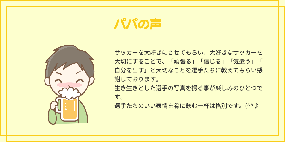でも、あくまでも応援だけですよ。応援だけ。プレーに対する指示等はベンチのコーチから出ていますのでお気をつけください。たくさん応援しましょう!